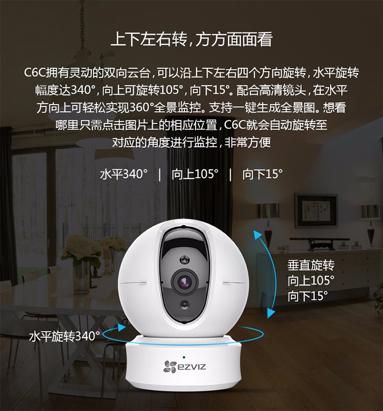 云臺(tái)角度水平0°-340°,垂直向上105°,向下15°