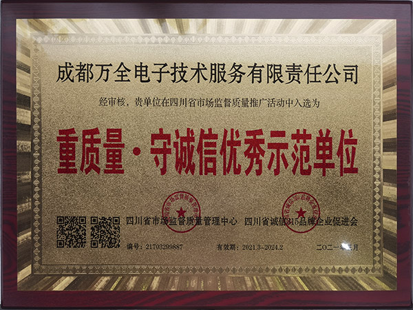 熱烈慶祝成都萬全電子榮獲"重質量·守誠信優(yōu)秀示范單位"稱號